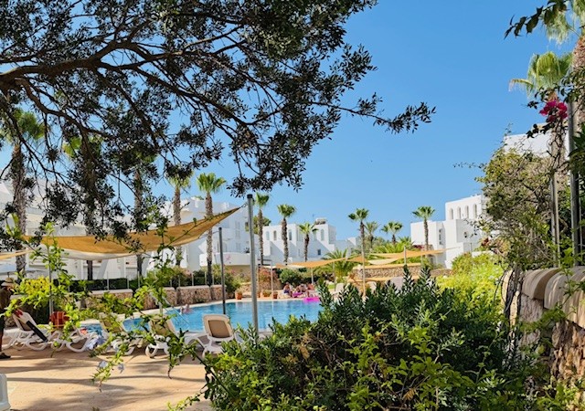 El verdadero atractivo de este inmueble radica en su impresionante terraza de 150 m² y un porche de 20 m², perfectos para organizar barbacoas con amigos o simplemente disfrutar del aire libre. Ubicado cerca de Cala Egos, el complejo ofrece un bonito jardín y una refrescante piscina, creando un ambiente perfecto para el ocio y la diversión.
