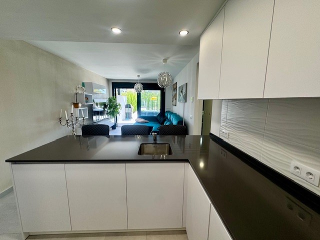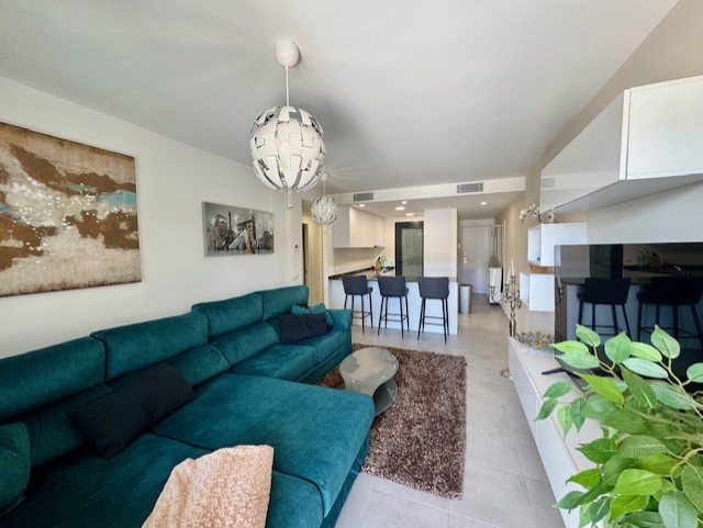 Con 79 m² construidos, el piso cuenta con 2 luminosos dormitorios y 2 baños equipados, además de una cocina moderna con electrodomésticos de la marca Bosch. La 20m2 gran terraza ofrece acceso directo a la piscina, perfecta para relajarte bajo el sol. El aire acondicionado frío/calor y el suelo radiante en los baños garantizan el máximo confort durante todo el año.